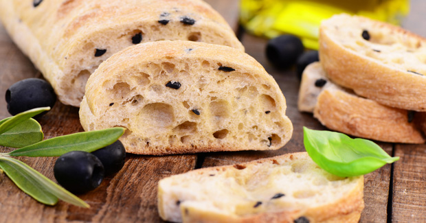 El pan de AOVE con aceitunas negras es exquisito para acompañar con tomate, sea en mermelada, triturado o natural cortado en rodajas.